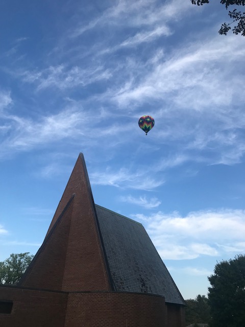 On a recent Sunday morning as I stood outside the front entrance of the church, getting some air and waiting to greet folks as they arrived, I looked up to see a hot air balloon aloft in the distance. Initially hardly more than a speck, the balloon gained in size as it closed the gap between us. Making use of a substantive air current, in just a few minutes it was overhead to the delight of a growing group of worship arrivals. Many, like me, were snapping photos, angling to catch both the balloon and the peak of the church building in their picture. Others were speculating who the pilot might be, naming a local man known to have flown balloons for some time. Some arrived commenting on how they had been watching the balloon as they drove in that morning. Still others were recalling prior hot air balloon experiences they’d had – a ride while traveling in Australia, attendance at the Albuquerque, New Mexico festival.