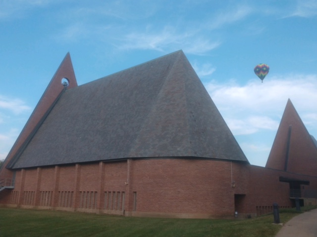 I rather wished we could’ve relocated worship outdoors that morning, given the blue sky and warm weather. Then speculated how challenging it would be to keep a congregation’s attention while a hot air balloon went over. Not a chance! I think you’d have to call an audible, suspending whatever was happening in worship, to let people enjoy the sight.