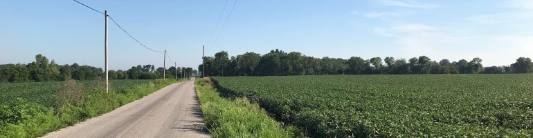 Just outside our small city, and this immediate neighborhood, one encounters the open fields of corn and soybeans in season. It is a rich and fertile farmland. I have often ridden my bike through these lands of plenty, part of the breadbasket that feeds so many.  This too can be a spiritual experience.  Farm ponds filled with bluegill.  Hawks circling their prey.  Deer jolting from the wooded ravines.  Dogs trying to chase down the guy on the bicycle.
