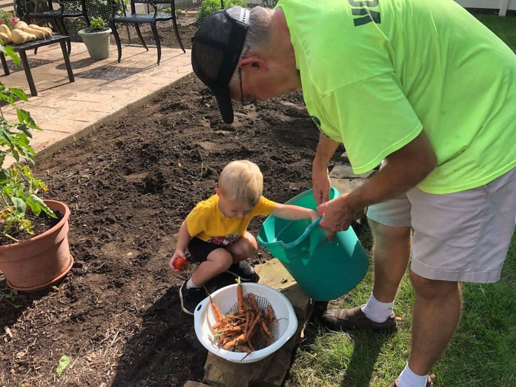 I have also enjoyed having a new gardening buddy, our grandson Oliver. He is my produce picker. At 2 1/2 he has great enthusiasm for picking a tomato and digging a carrot. It’s fun to see the growing season through his eyes. I’m hoping we’re planting the seeds of new generation of gardener in this young lad. He does like to water the garden, so maybe that’s a start!